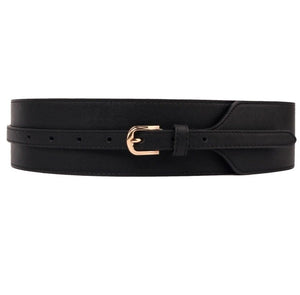 Išskirtinio dizaino moteriškas diržas iš tvirtos ekologiškos odos – tai stilingas akcentas, puikiai derantis prie suknelių, švarkų ar ilgesnių marškinių. Platus siluetas ir aukso spalvos metalinė sagtis suteikia išraiškingumo bet kokiam įvaizdžiui.