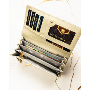 - Turi 6-10 kortelių skyrių ir užsegamą monetų skyrių.