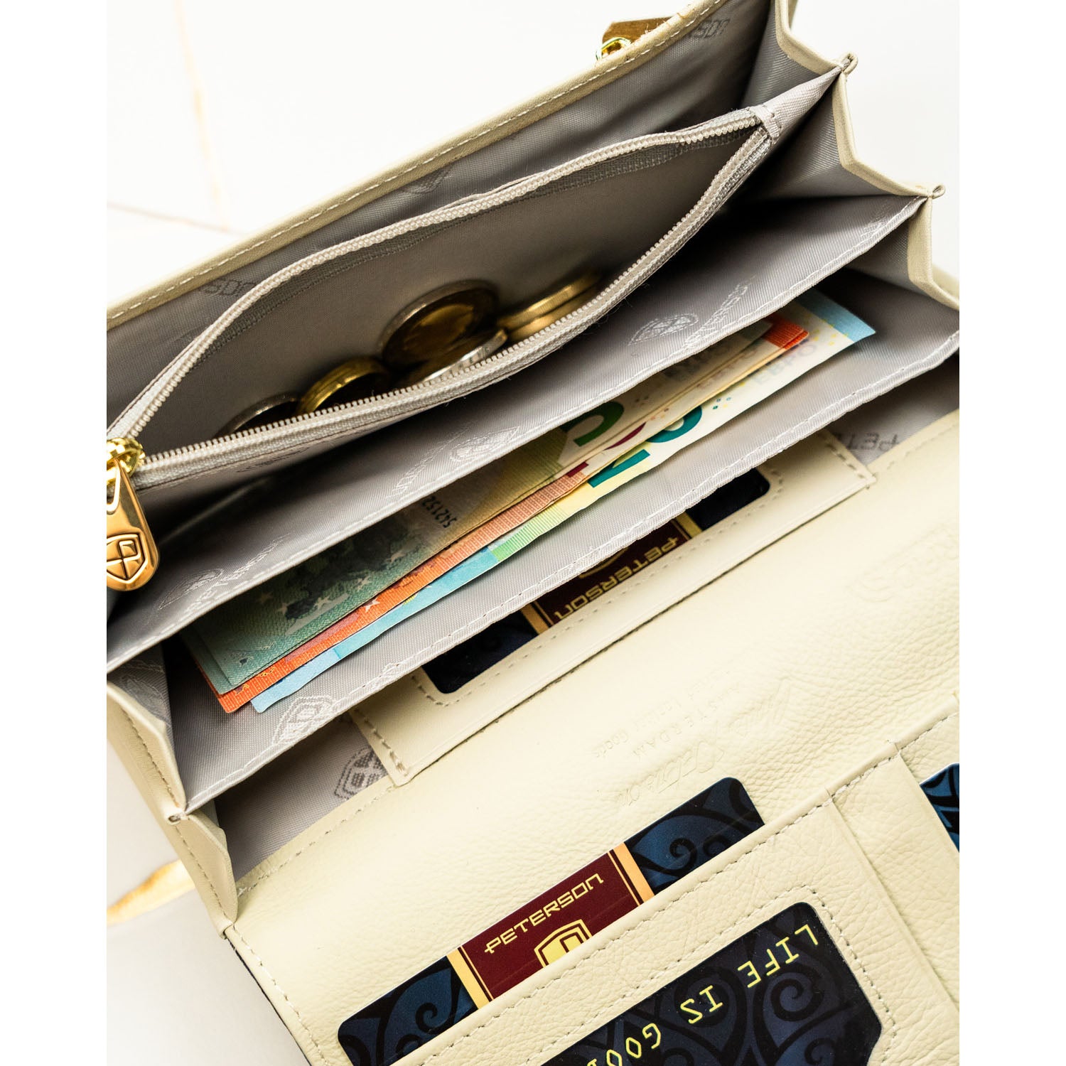 Peterson moteriška piniginė iš dirbtinės odos, smėlio ir mėlynos spalvų derinio.