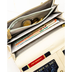 - Turi 6-10 kortelių skyrių ir užsegamą monetų skyrių.