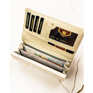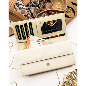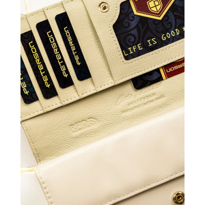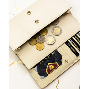Peterson moteriška piniginė iš dirbtinės odos, smėlios spalvos, su skyriumi monetoms ir RFID apsauga.