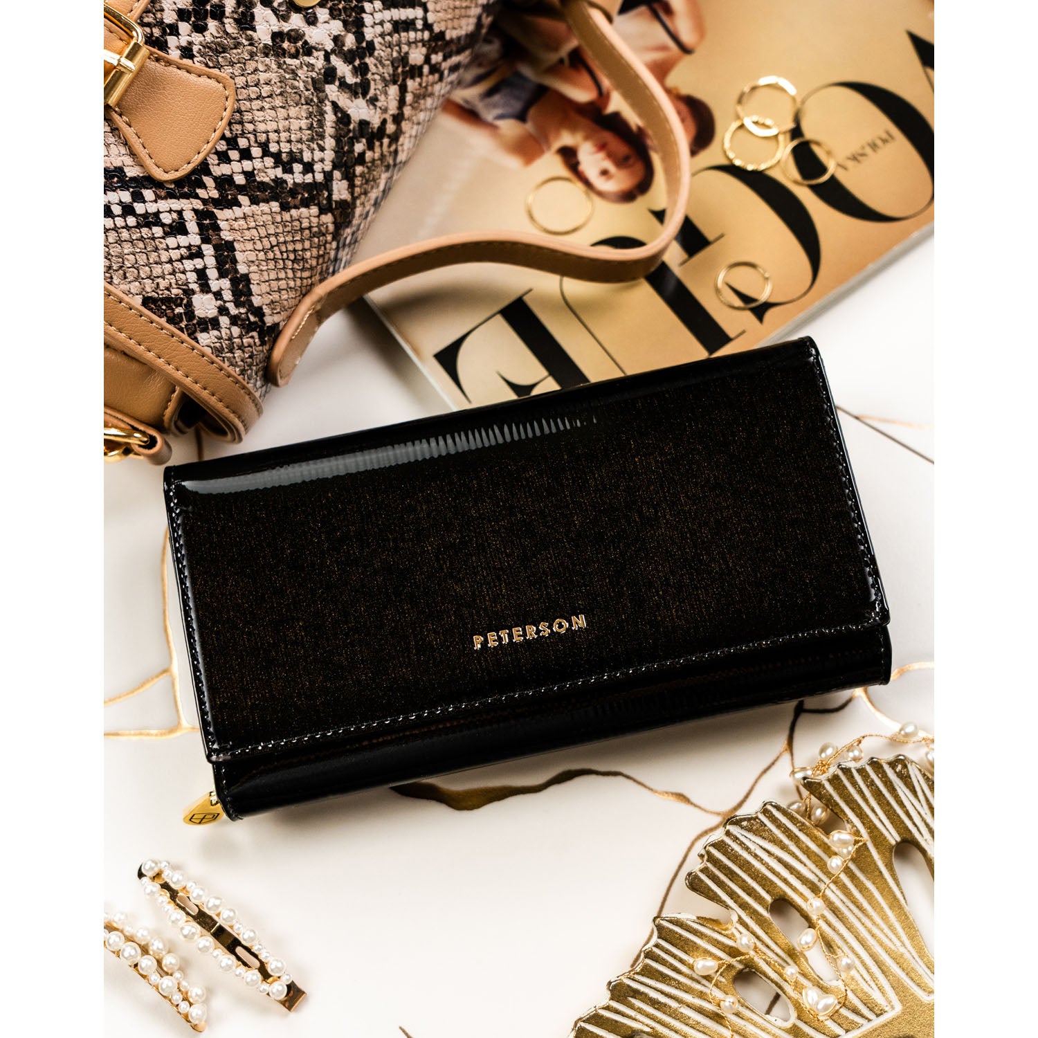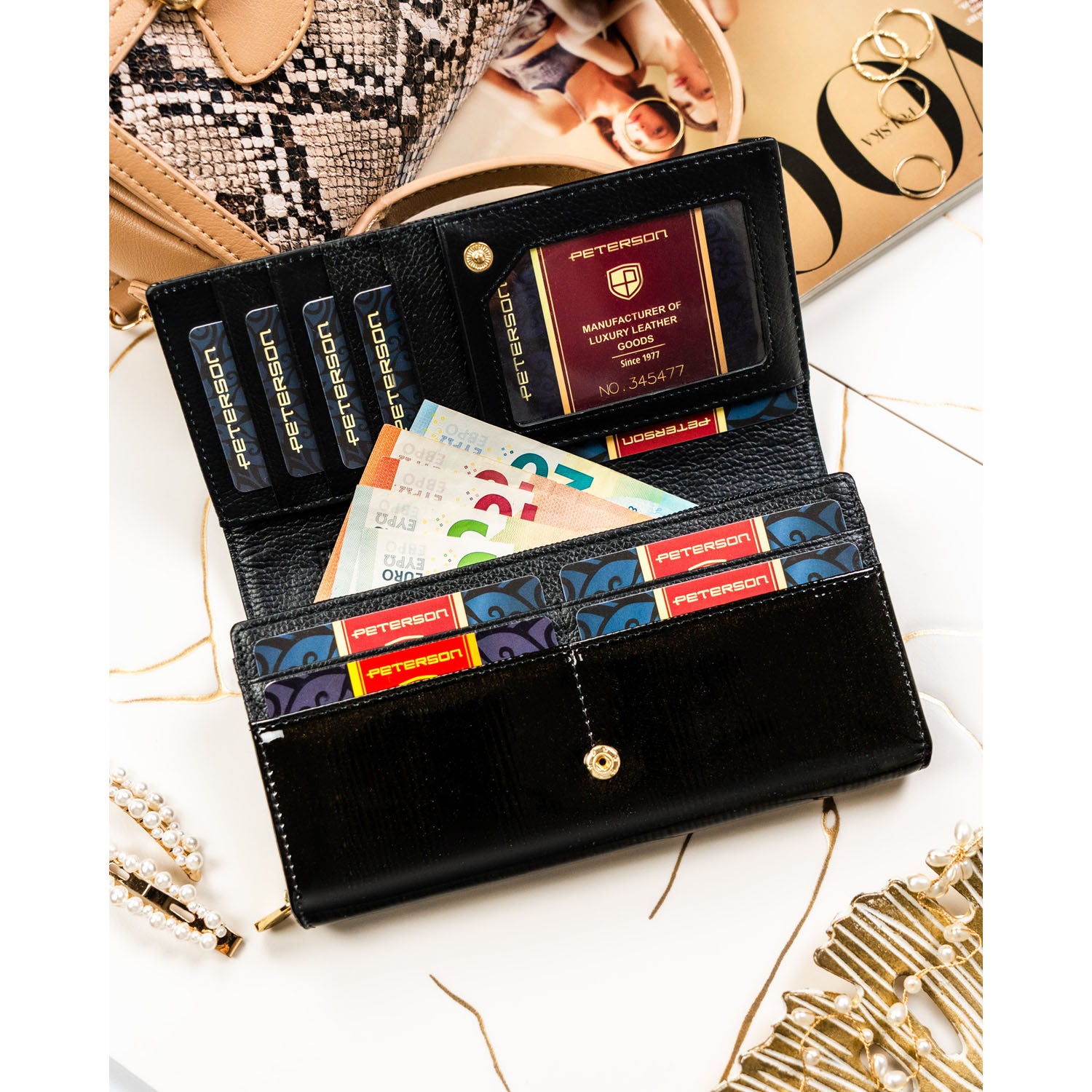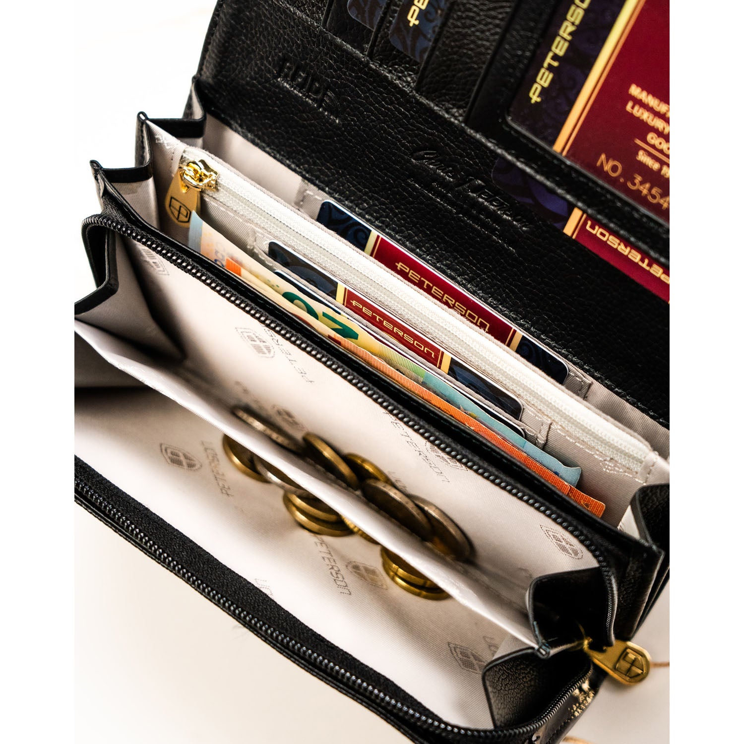 Piniginė moterims Peterson, juoda G21 – praktiškas ir stilingas pasirinkimas, užtikrinantis patogų turinio išdėstymą ir papildomą kortelių saugumą.