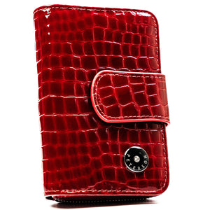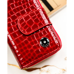 Moteriška raudona odinė piniginė Peterson – praktiška, vidutinio dydžio vertikali piniginė kasdieniam naudojimui. Pagaminta iš natūralios odos su subtilia krokodilo rašto faktūra, ji išsiskiria elegantiška išvaizda ir patogiu vidaus išdėstymu.