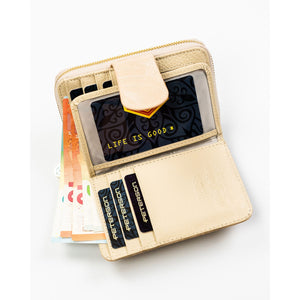 Peterson moteriška piniginė iš dirbtinės odos, smėlio spalvos, su užsegimu.