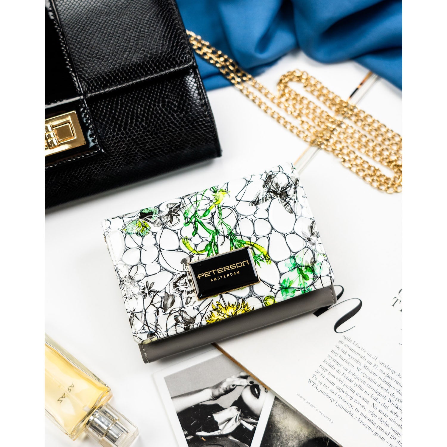 Peterson moteriška piniginė iš natūralios odos, žalios spalvos, su RFID apsauga.