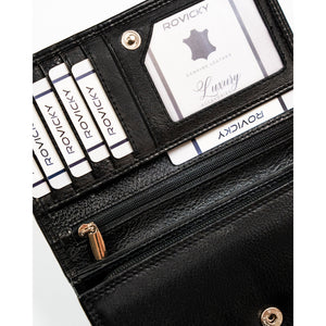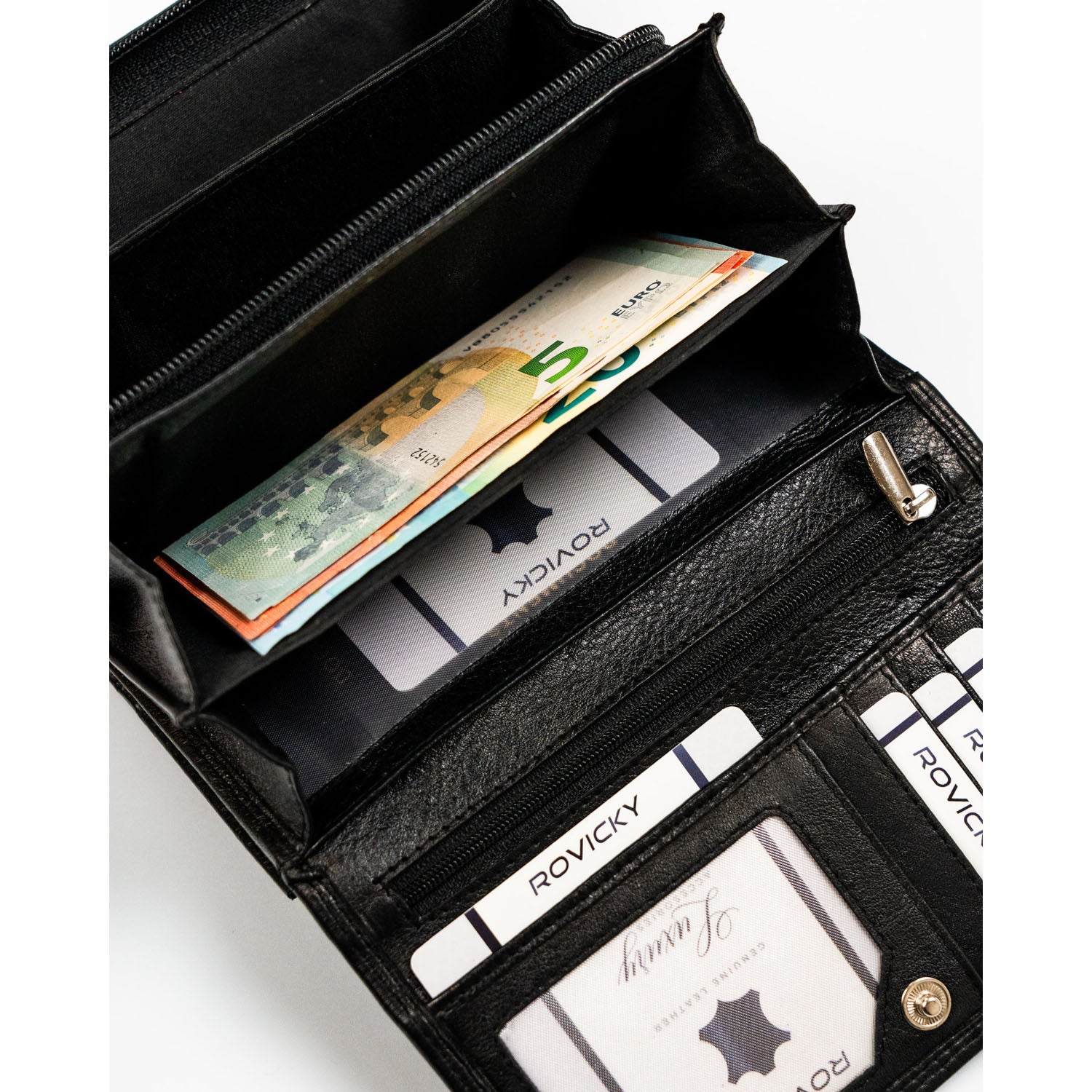 Elegantiška Rovicky moteriška rankinė iš natūralios odos, juodos spalvos, su RFID apsauga.