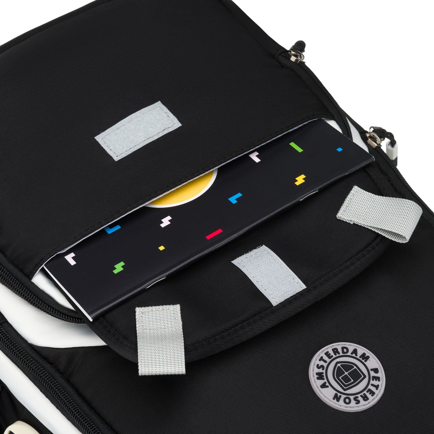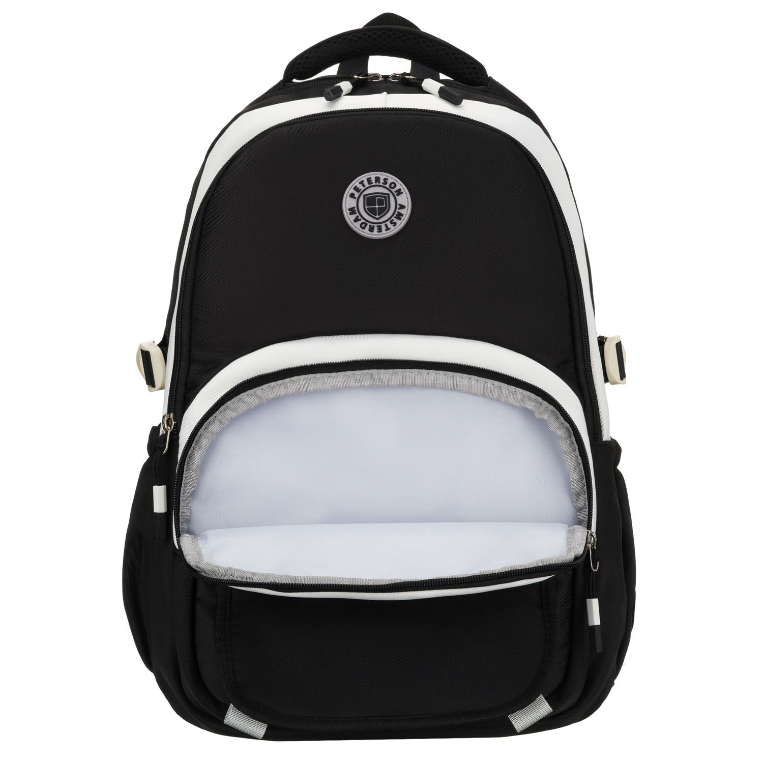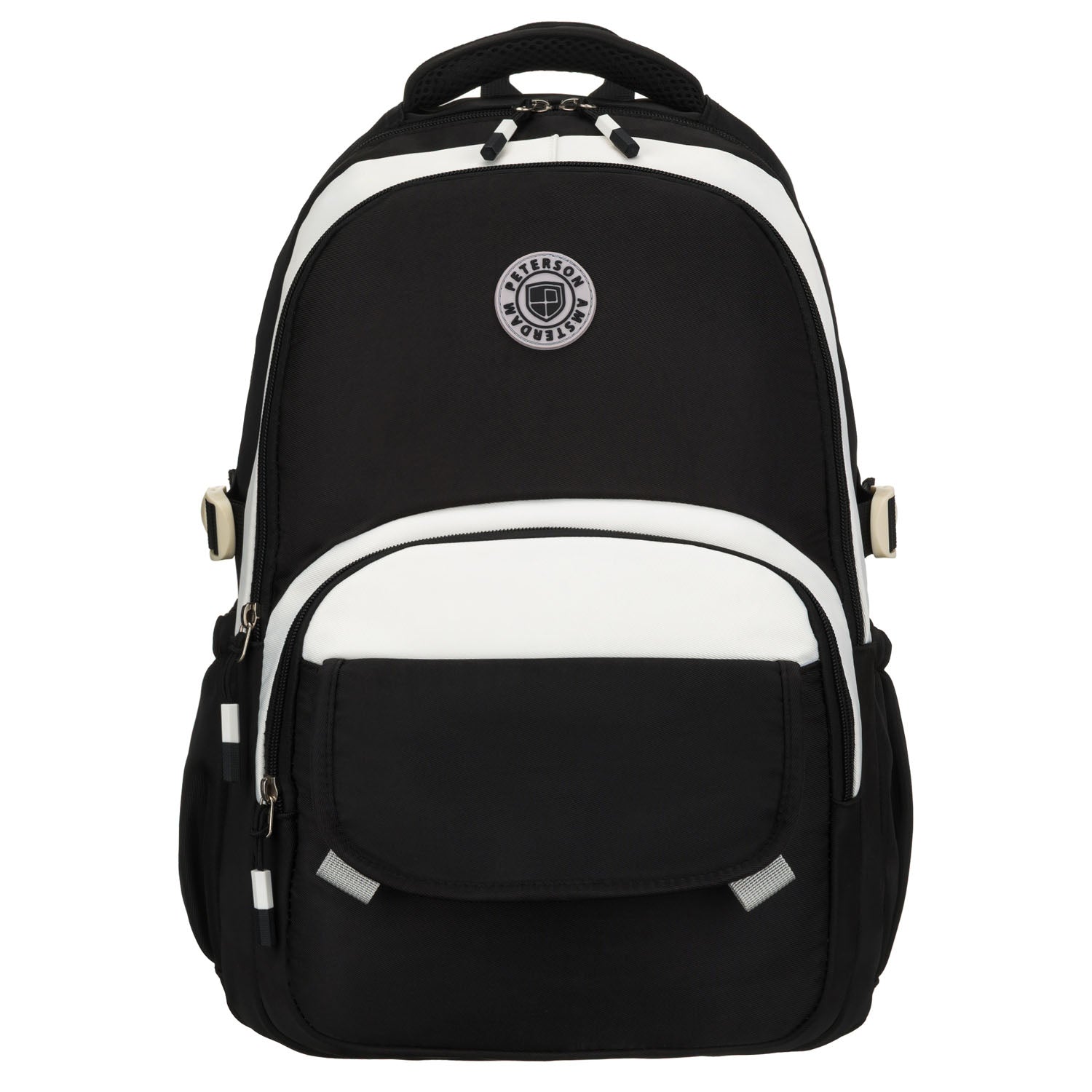Peterson juoda didelė kuprinė su dviem skyriais, pagaminta iš poliesterio, puikiai tinka kasdieniam naudojimui.