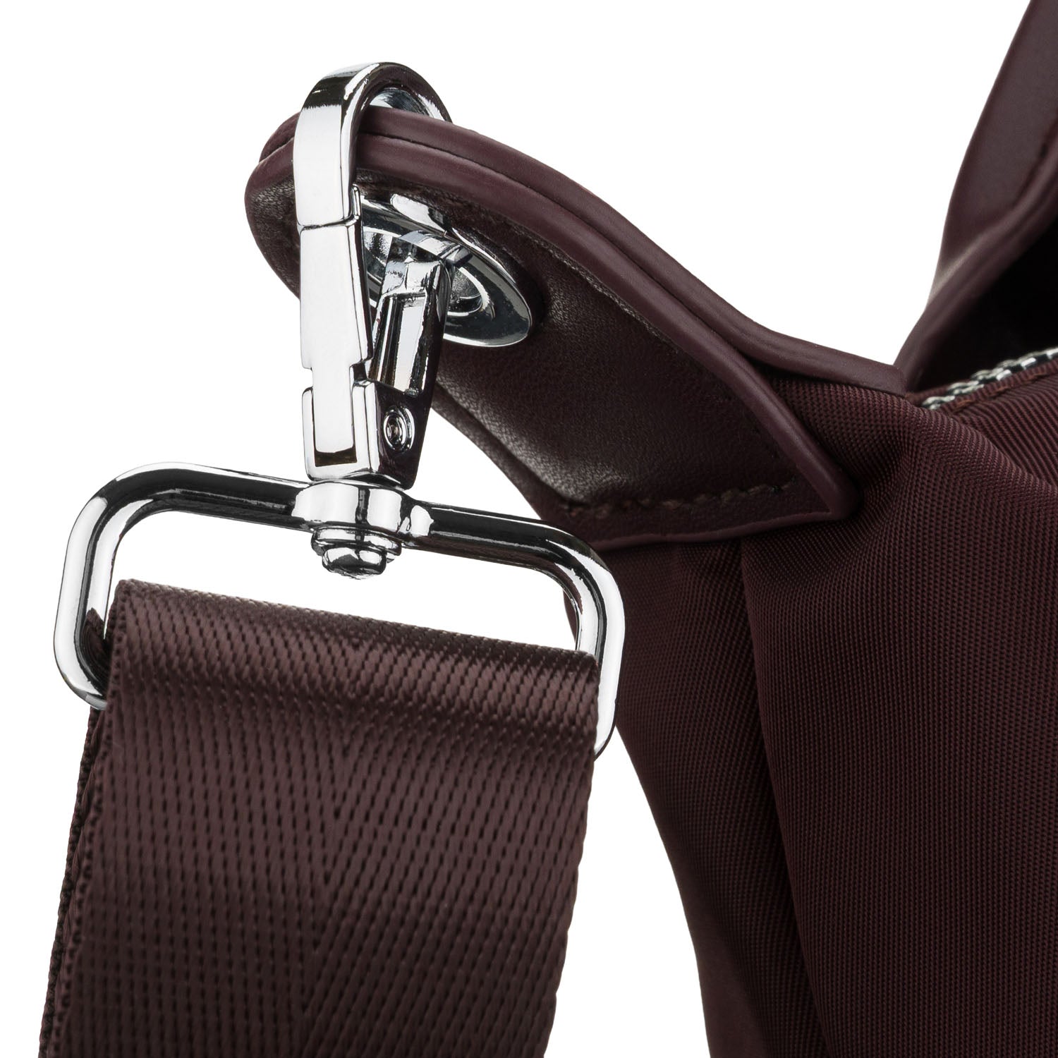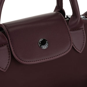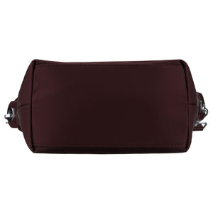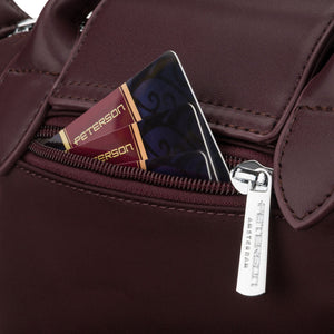 Maža bordo spalvos Peterson moteriška crossbody rankinė – patogi kasdienė listonoška su reguliuojamu diržu ir keliais skyriais daiktams susidėti.