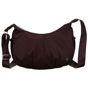 Maža bordo spalvos moteriška crossbody rankinė iš poliesterio – patogi kasdieniam nešiojimui per petį.