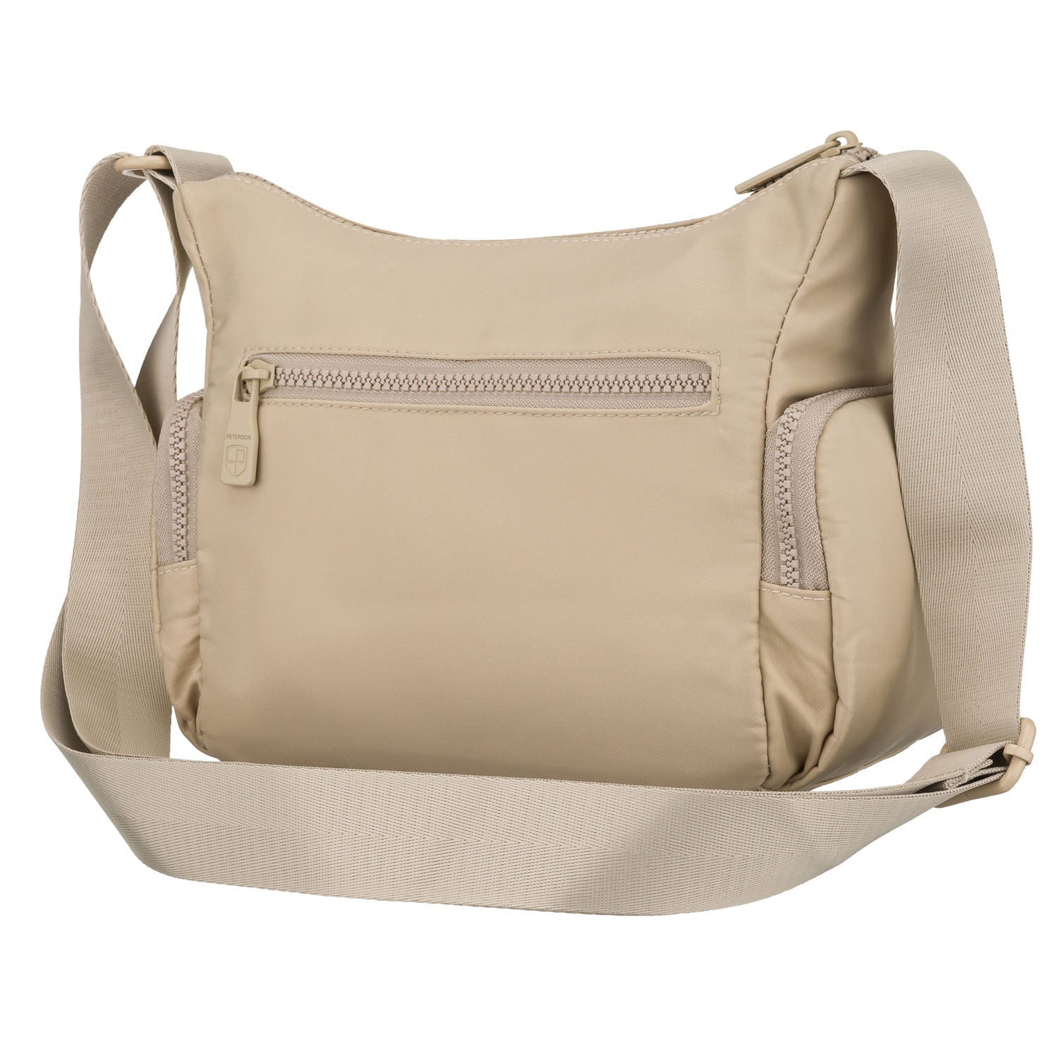 Maža moteriška Peterson crossbody rankinė iš poliesterio – patogi kasdienė ecru spalvos rankinė su keliais skyriais ir kišenėmis.