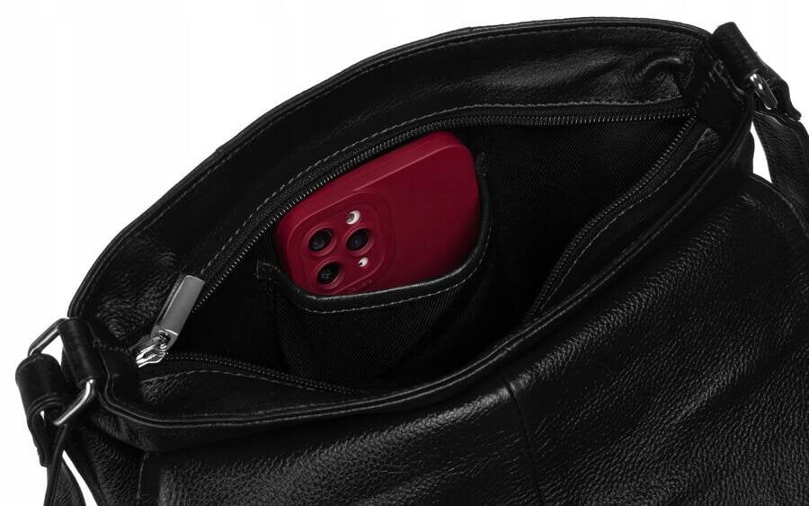 Krepšys susideda iš erdvaus pagrindinio skyriaus. Be to, skyriuje yra dvi kišenės : viena atvira, kita užsegama užtrauktuku. Puikiai tinka raktams ir telefonui.
