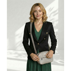 Moteriška šviesiai pilka Rovicky crossbody rankinė iš kokybiškos dirbtinės odos – kompaktiškas ir praktiškas pasirinkimas kasdienai, nešiojimui ant peties arba per kūną.