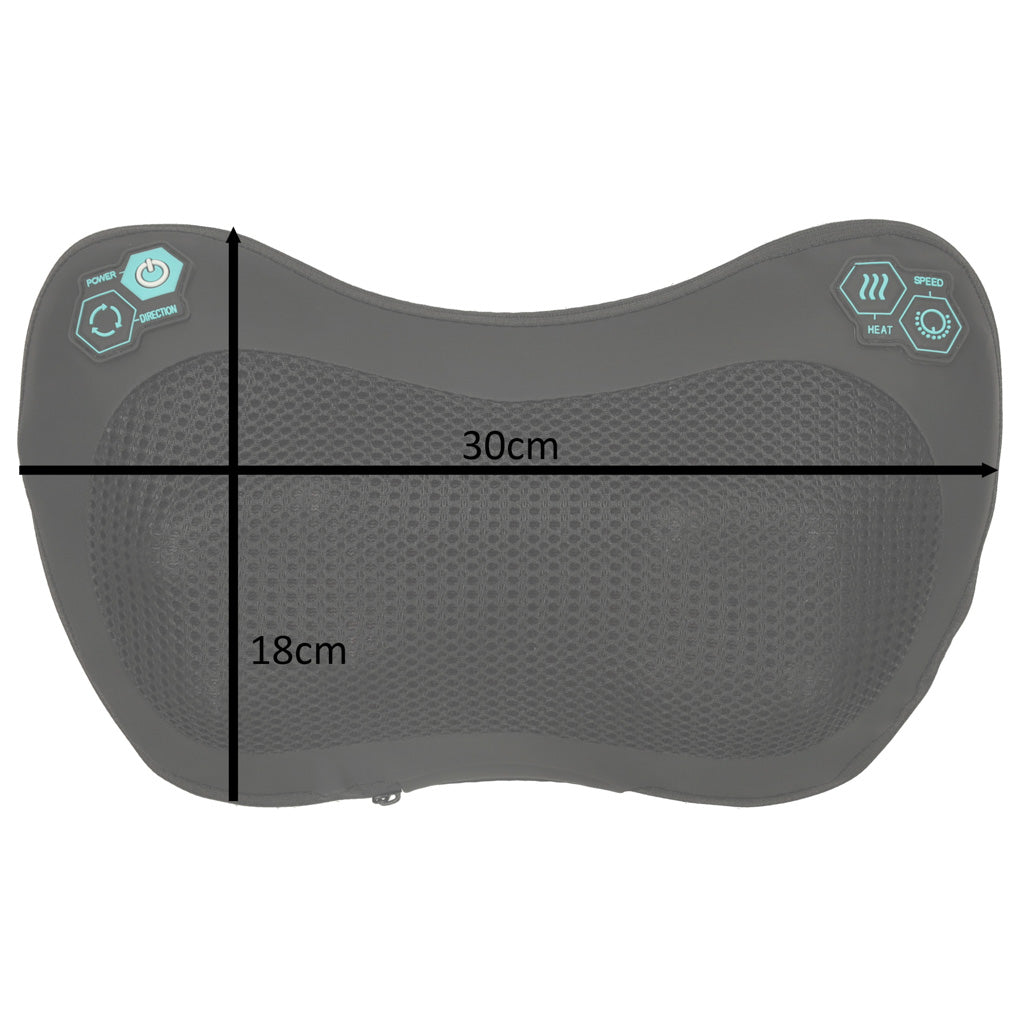 Ergonomiškas masažuoklis pagalvės formos yra idealus prietaisas kiekvienam, ieškančiam būdo atsipalaiduoti įsitempusius raumenis. Prietaisas turi 3 masažo intensyvumo režimus, šildymo funkciją ir galimybę keisti galvučių sukimosi kryptį – todėl darbo intensyvumą galima pritaikyti pagal savo poreikius. Užtikrina atpalaiduojantį masažą bet kurioje vietoje – namuose, biure ar net automobilyje. Turi elastingą diržą, leidžiantį pritvirtinti masažuoklį prie automobilio sėdynės. Prietaiso danga yra pagaminta iš ekologiškos odos ir tinklelio. Komplekte yra tradicinis tinklo įkroviklis ir automobilinis įkroviklis.