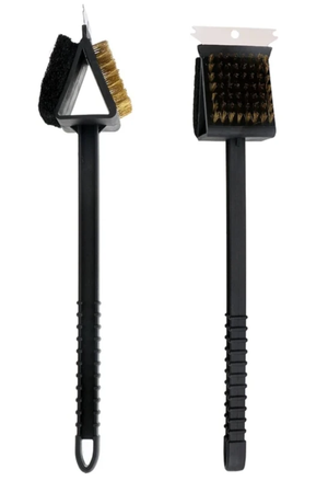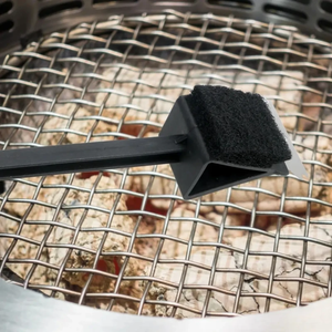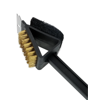 Šis grilio šepetys yra pagamintas iš aukštos kokybės medžiagų, užtikrinančių ilgaamžiškumą ir patikimumą. Jis sujungia plieninį vielinį šepetį, kempinę ir grandiklį, kad jūsų grotelių valymas būtų visapusiškas ir efektyvus.