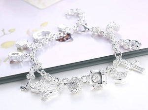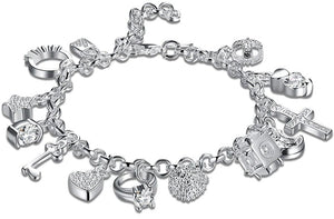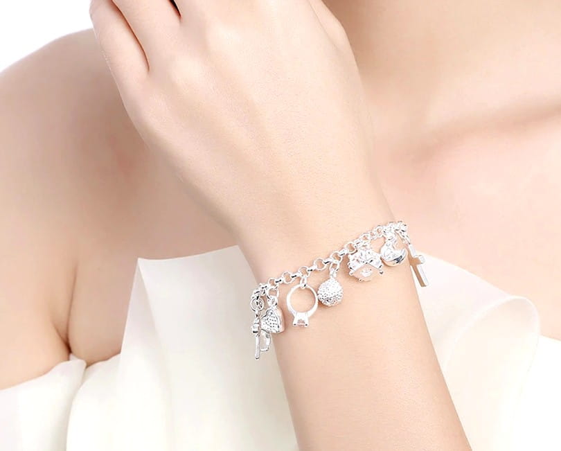 Sidabrinė apyrankė su pakabučiais yra universalus aksesuaras, kurį lengva priderinti prie bet kokios progos.