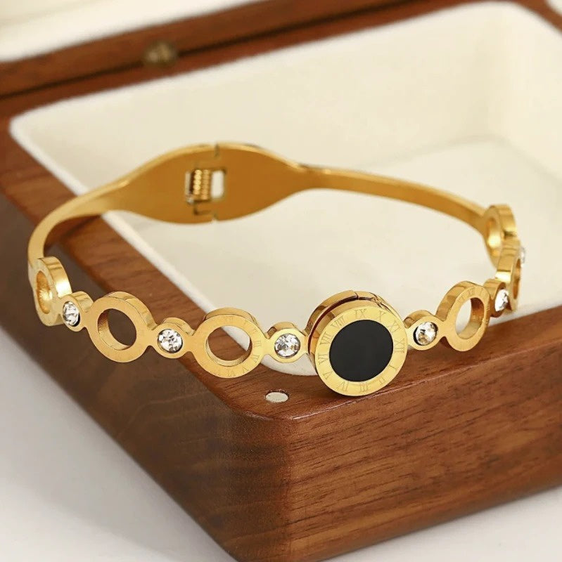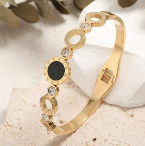 Ši elegantiška apyrankė pagaminta iš aukštos kokybės chirurginio plieno 316L, kuris yra žinomas dėl savo ilgaamžiškumo ir atsparumo korozijai.