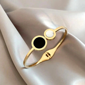 Ši elegantiška apyrankė pagaminta iš aukštos kokybės nerūdijančiojo plieno, kuris yra antialerginis ir ilgaamžis. Tai puikus pasirinkimas tiek kasdieniam, tiek elegantiškam stiliui.