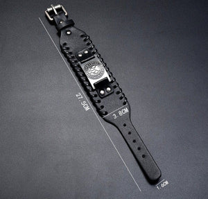 Ši vyriška plati odinė apyrankė yra puikus aksesuaras, įkvėptas Šiaurės šalių mitologijos. Apyrankė puošia šiaurietiškas runų ženklas, simbolizuojantis Šiaurės šalių karių dvasią.