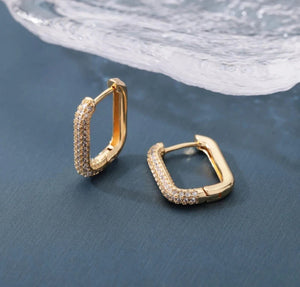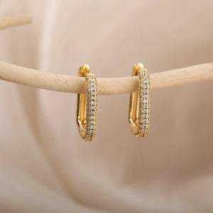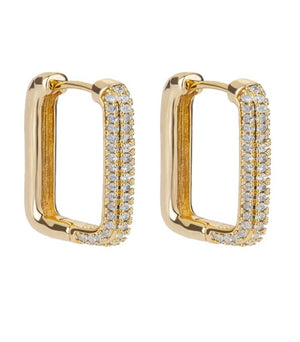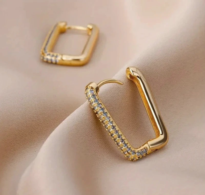 Šie elegantiški paauksuoti stačiakampiai auskarai yra puikus pasirinkimas tiems, kurie vertina subtilų stilių ir prabangą. Auskarai dekoruoti ryškiais cirkoniais, kurie suteikia papildomo žavesio ir spindesio.