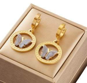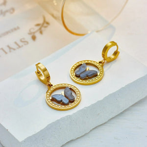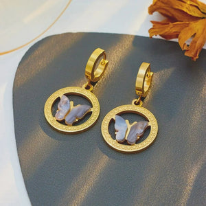 - Elegantiškas dizainas su kabančiais mažais apskritimais ir drugeliais