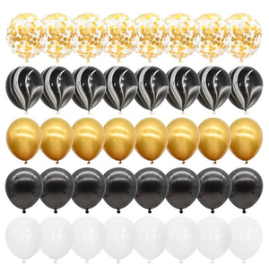 Šis 40 juodų, auksinių ir baltų balionų rinkinys yra puikus pasirinkimas elegantiškoms dekoracijoms kurti. Rinkinį sudaro trijų skirtingų tipų balionai: blizgūs, matiniai ir skaidrūs su konfeti.