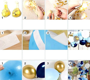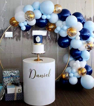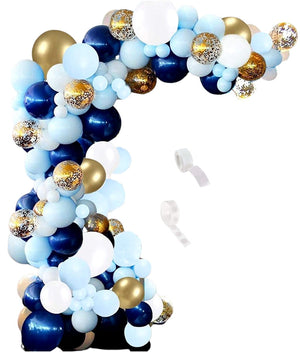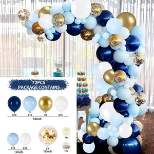 Šis 72 vienetų balionų rinkinys, sudarytas iš mėlynos, baltos ir auksinės spalvų, puikiai tinka elegantiškoms dekoracijoms kurti. Rinkinys apima įvairių dydžių balionus, kuriuos galima pripildyti tiek įprastu oru, tiek heliu, siekiant dar įspūdingesnio efekto.