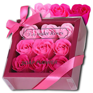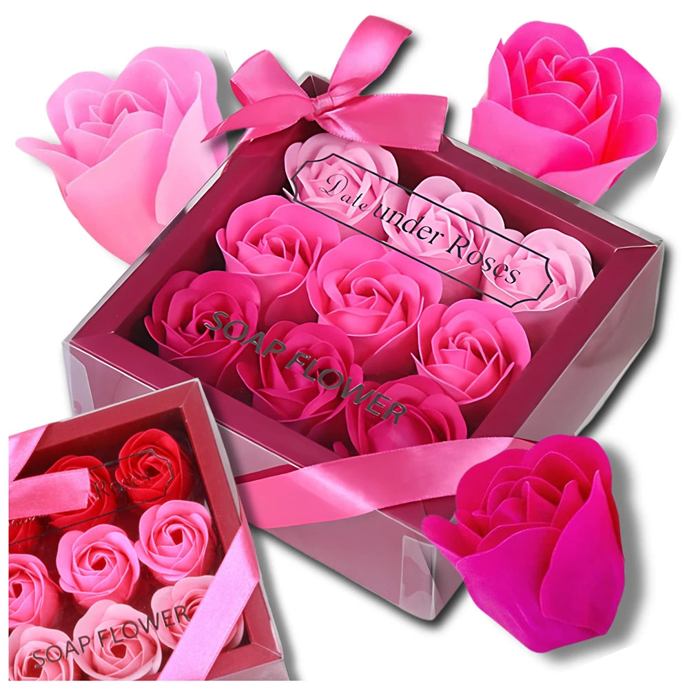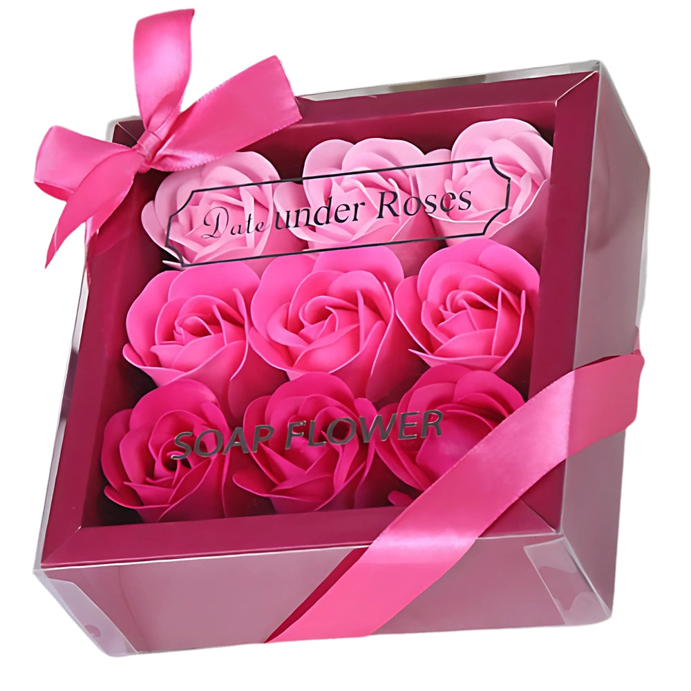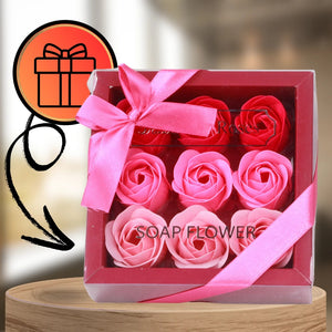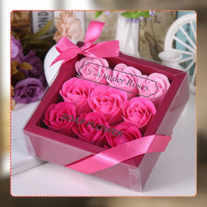 Dekoratyvinės rožinės muilo rožės, 9 vnt. dovanų rinkinys