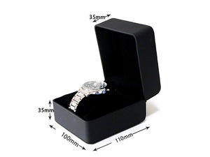 Ši elegantiška dėžutė yra puikus pasirinkimas vienam laikrodžiui ar apyrankei laikyti. Pagaminta iš aukštos kokybės ekologiškos odos, ji pasižymi matine juoda spalva, suteikiančia prabangos pojūtį.