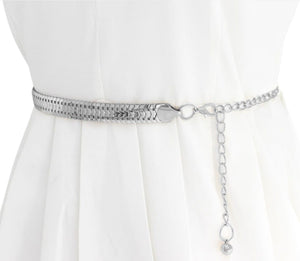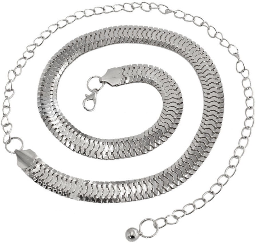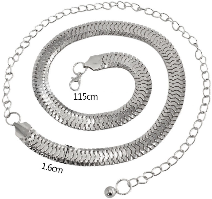 Šis elegantiškas sidabro spalvos diržas yra puikus aksesuaras, suteikiantis jūsų aprangai išskirtinumo.