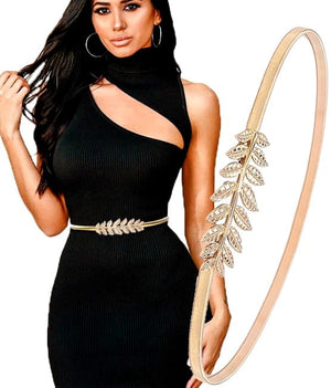 Šis elegantiškas spyruoklinis diržas su lapelio dekoracija yra puikus pasirinkimas stilingoms moterims. Diržas užsisega priekyje, o po subtilios rožinio aukso spalvos sagtimi yra paslėptas kabliukas, užtikrinantis saugų užsegimą.