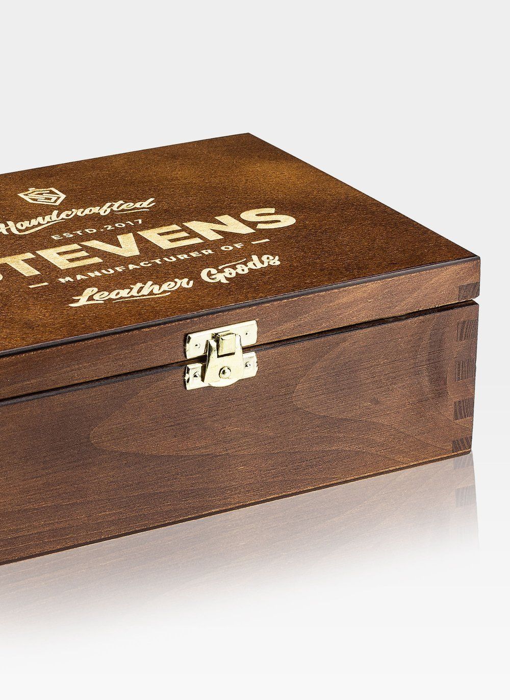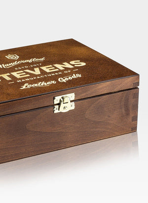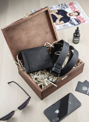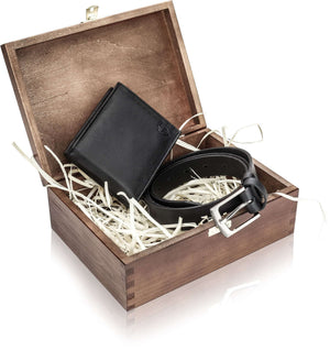 Dovanų rinkinys vyrams – piniginė ir diržas STEVENS 325 medinėje dėžutėje