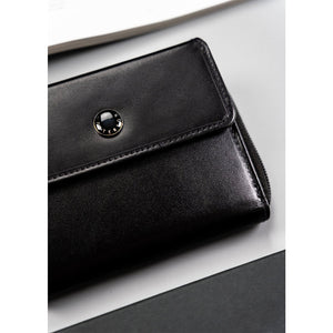 Elegantiška ir funkcionali juodos spalvos moteriška piniginė iš natūralios odos, sukurta atsižvelgiant į šiuolaikinių moterų poreikius. Ši piniginė ne tik stilinga, bet ir praktiška, puikiai tinkanti kasdieniam naudojimui.
