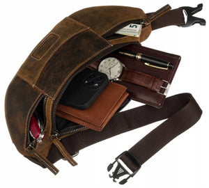 Šis juosmens krepšys yra pagamintas iš aukštos kokybės natūralios odos, užtikrinančios ilgaamžiškumą ir stilingą išvaizdą. Tamsiai ruda spalva suteikia elegancijos ir universalumo, todėl krepšys puikiai tiks įvairioms progoms.