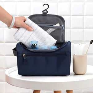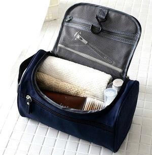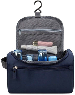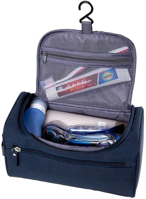 Šis tamsiai mėlynos spalvos pakabinamas tualeto reikmenų krepšys yra puiki dovana įvairaus amžiaus vyrams. Jis talpina daugybę skalbimo ir kūno priežiūros reikmenų, todėl yra nepakeičiamas kelionėse.