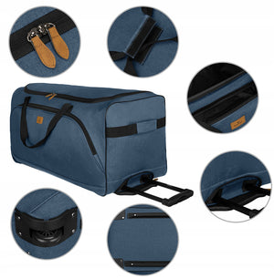 Šis erdvus kelioninis krepšys yra pagamintas iš itin patvaraus poliesterio audinio, užtikrinančio ilgaamžiškumą ir patikimumą kelionėse.