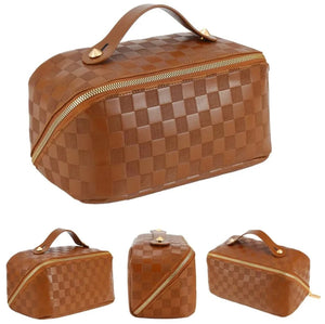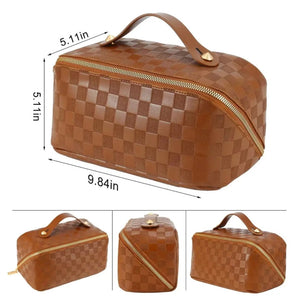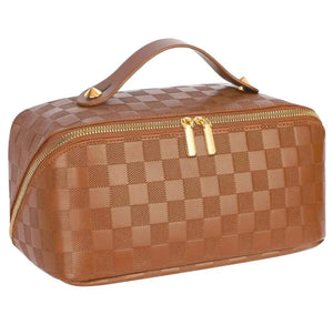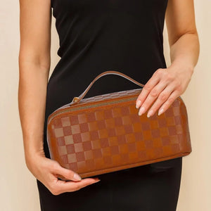 Ši elegantiška rudos spalvos kosmetinė, pagaminta iš ekologiškos odos, yra puikus pasirinkimas makiažo ir kosmetikos organizavimui.