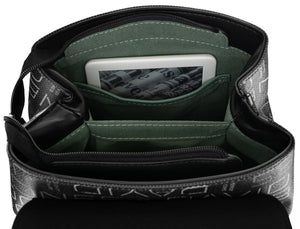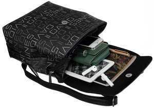 Ši elegantiška moteriška kuprinė yra puikus pasirinkimas miesto gyvenimui. Pagaminta iš aukštos kokybės ekologiškos odos, ji pasižymi stilingu raštu ir funkcionalumu. Kuprinė užsegama atvartu su magnetiniu segtuku, po kuriuo yra papildomas užtrauktukas, užtikrinantis saugumą.