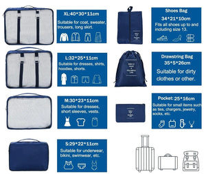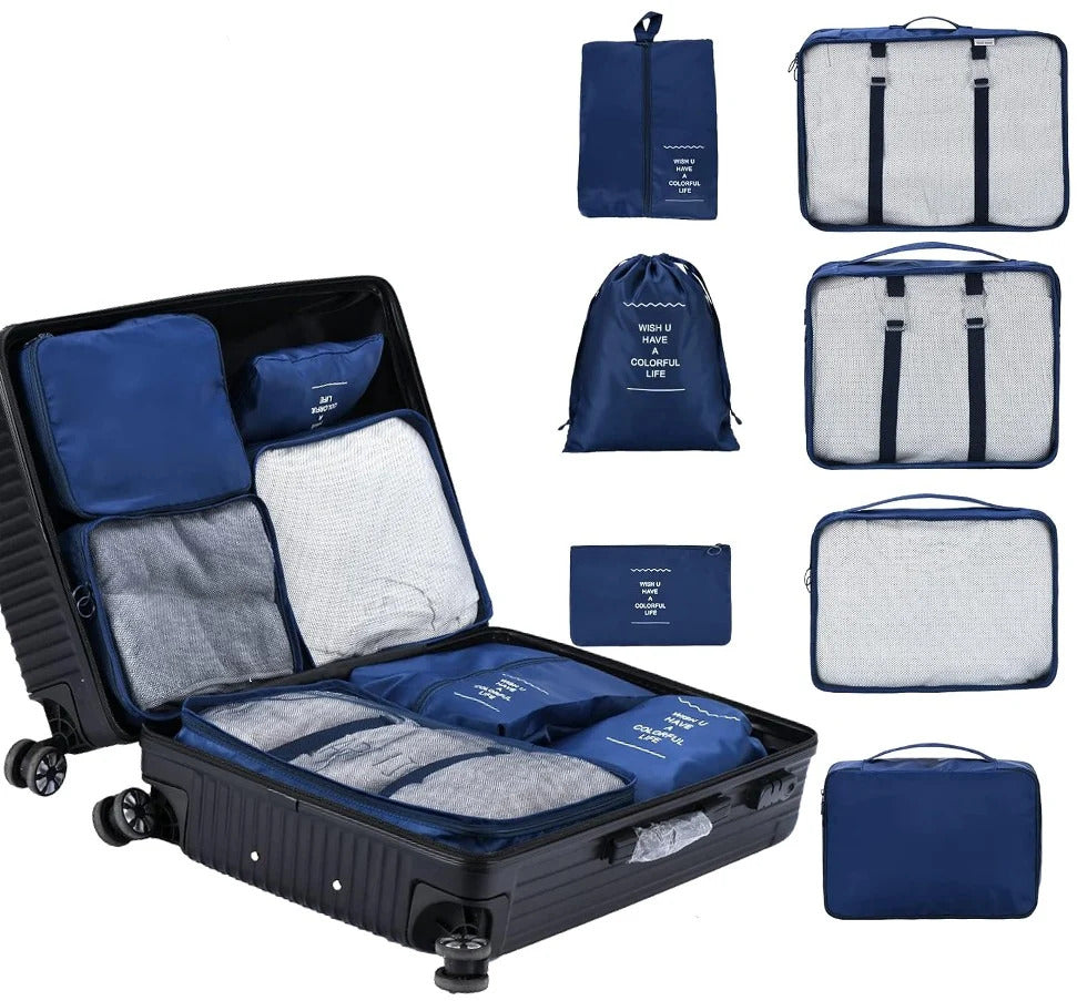 Šis kelionių organizatorių rinkinys yra puikus sprendimas jūsų lagaminui. Pagaminti iš vandeniui atsparios medžiagos, šie maišeliai idealiai tinka drėgniems maudymosi kostiumėliams laikyti. Jie padeda išlaikyti jūsų lagaminą tvarkingą ir palengvina išpakavimą naujoje vietoje, taip pat leidžia lengviau rasti daiktus lagamine.