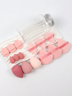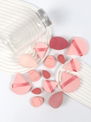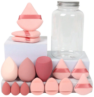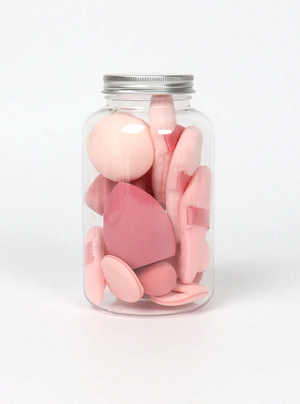 Visos kempinėlės ir padeliai yra patogiai supakuoti stikliniame indelyje, kuris ne tik apsaugo, bet ir suteikia stilingą išvaizdą jūsų kosmetikos kolekcijai.