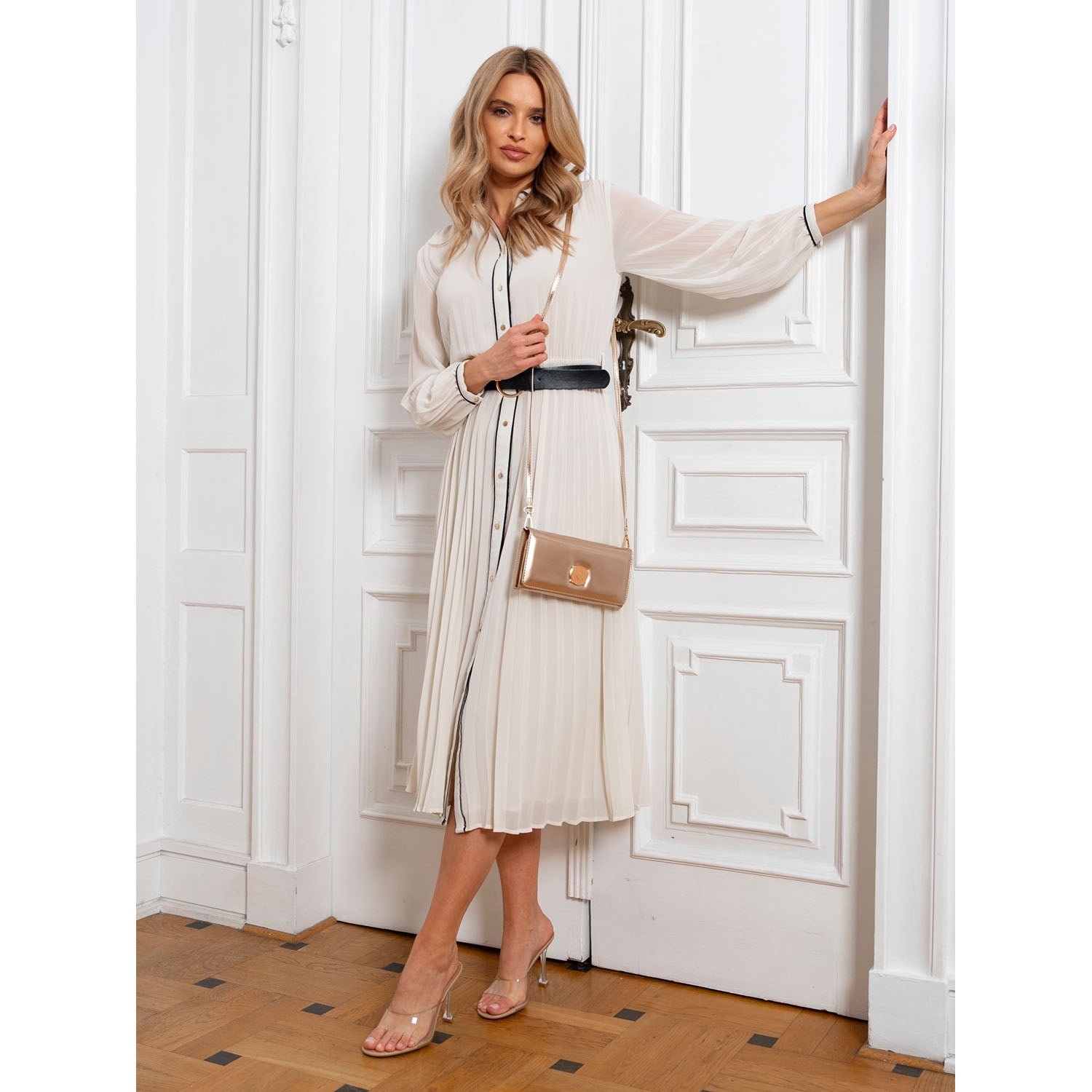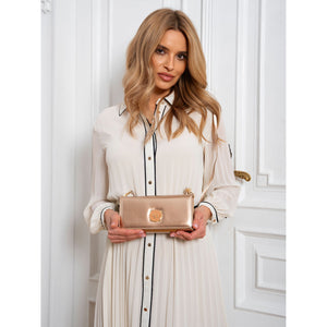Rovicky moteriška rankinė iš ekologiškos odos, auksinės spalvos, su magnetiniu užsegimu.
