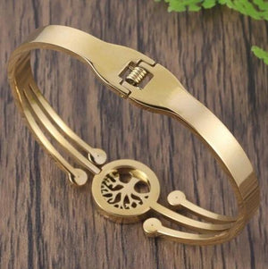 Ši elegantiška apyrankė pagaminta iš paauksuoto chirurginio plieno, kuris yra nerūdijantis ir antialerginis. Tai puikus pasirinkimas tiek kasdieniam, tiek elegantiškam stiliui.