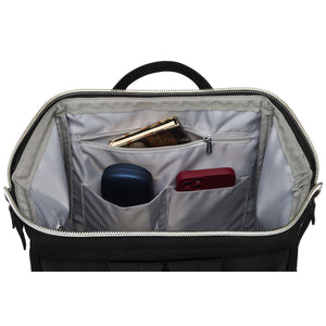Moteriška kuprinė, juoda, su vieta nešiojamam kompiuteriui ir USB jungtimi