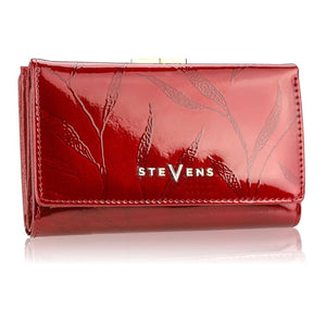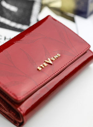 Moteriška odinė piniginė STEVENS lakuota, raudonos spalvos D1882