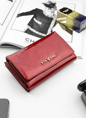 Moteriška odinė piniginė STEVENS lakuota, raudonos spalvos