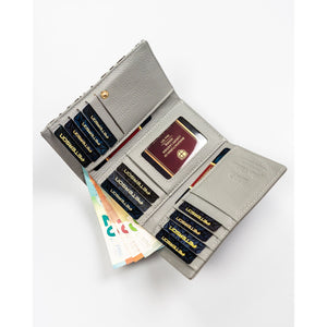 Ši elegantiška moteriška piniginė iš natūralios odos yra puikus pasirinkimas kasdieniam naudojimui. Jos modernus dizainas ir funkcionalumas užtikrina, kad viskas, ko jums reikia, bus patogiai pasiekiama.