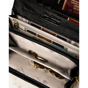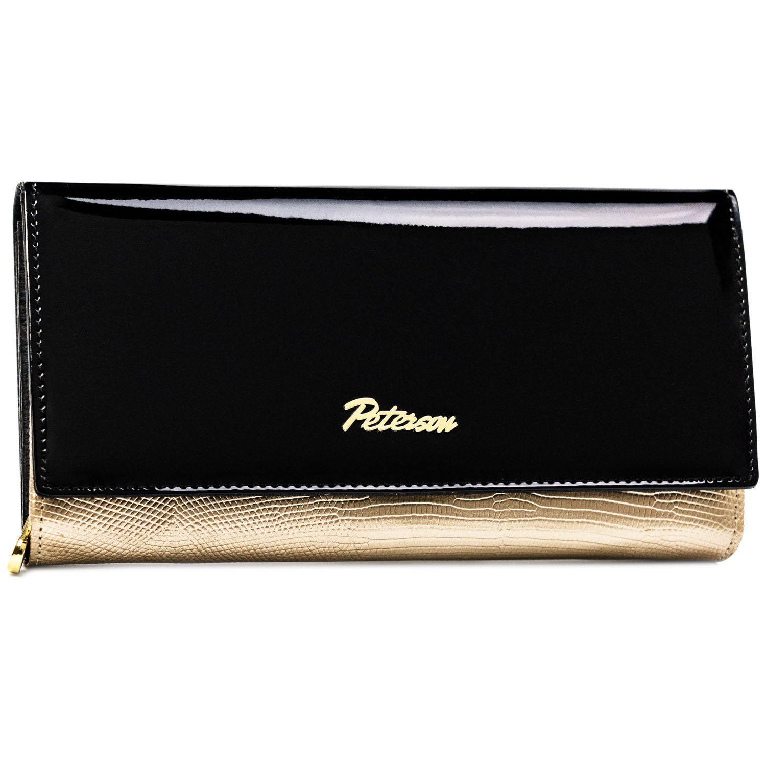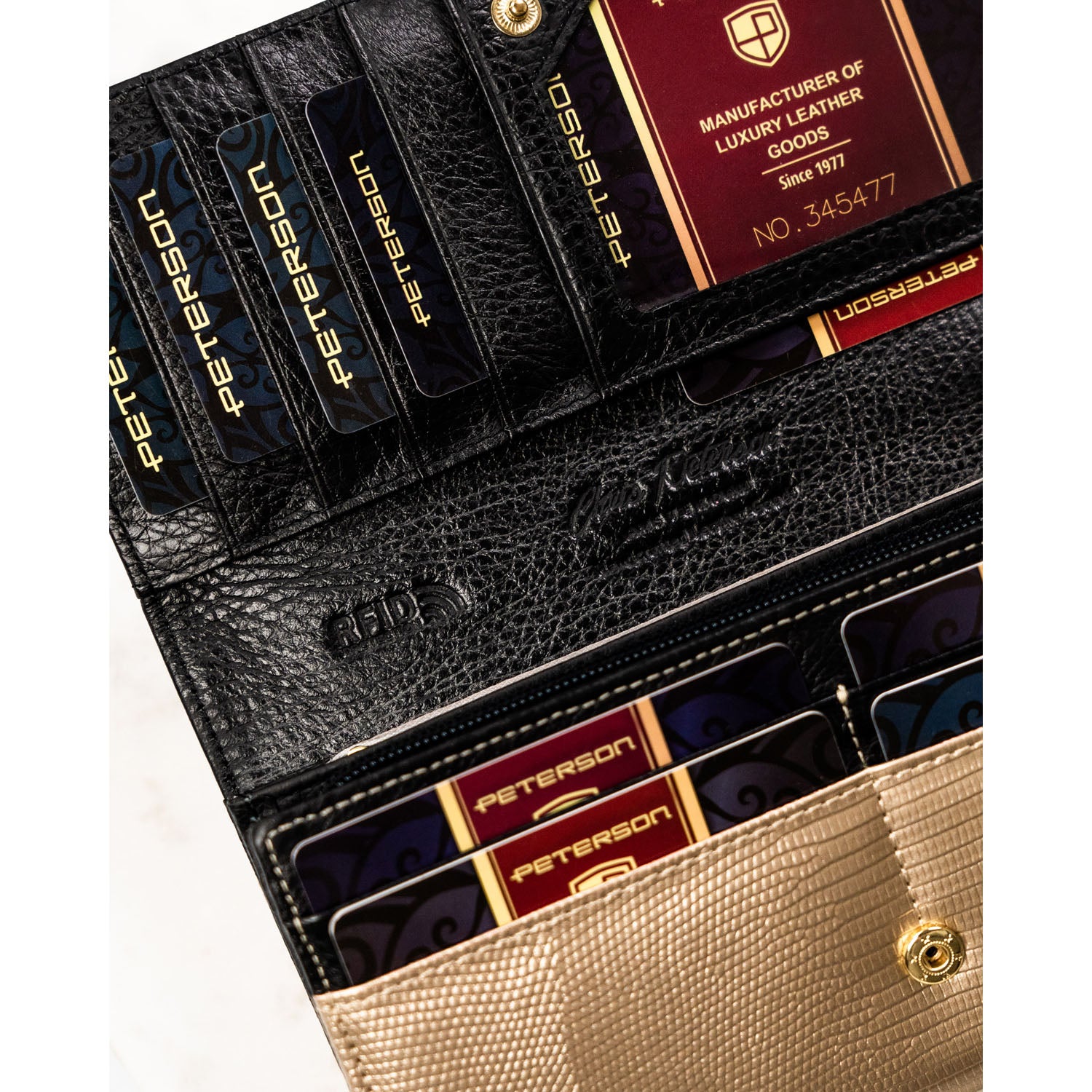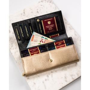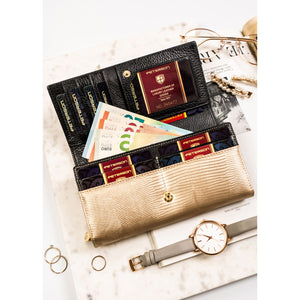 Moteriška piniginė, juoda-aukso, natūrali oda, RFID sistema D1635