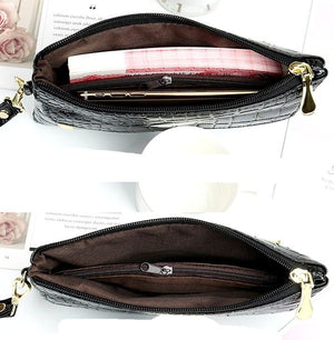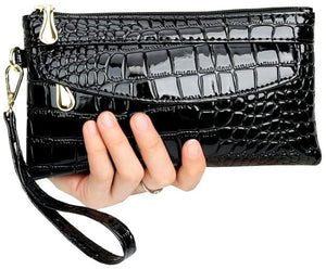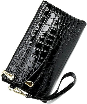 Ši lakuota ir dygsniuota piniginė yra dviejų funkcijų derinys – ji gali būti naudojama kaip piniginė ir telefono dėklas. Tai puikus sprendimas tiems, kurie nori turėti viską vienoje vietoje.