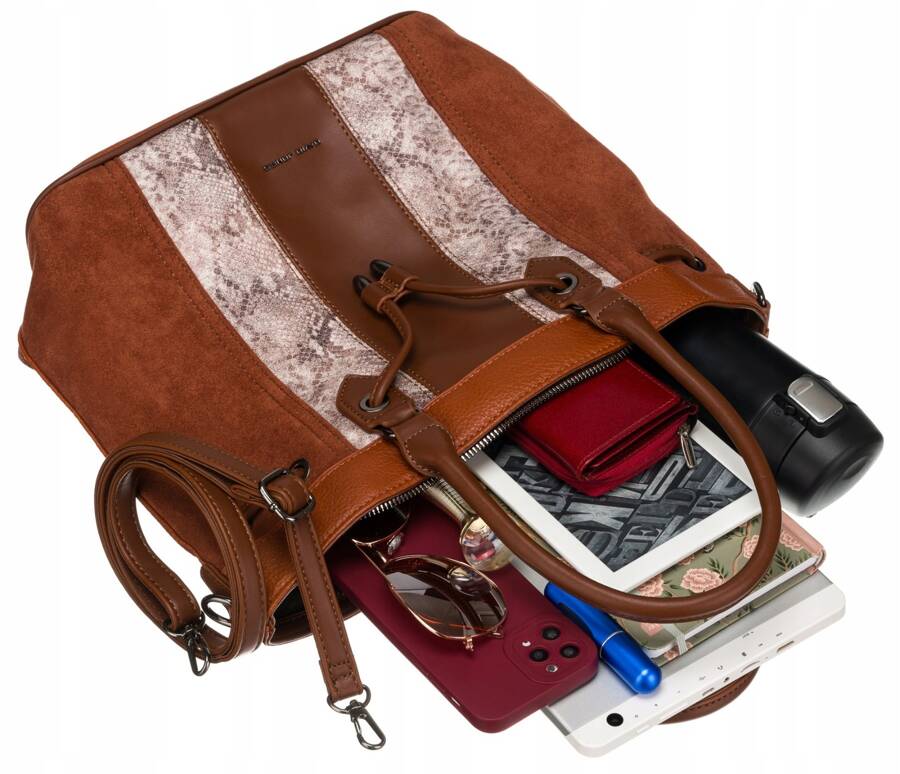 - Rankinė komplektuojama su ilgu, reguliuojamu ir nuimamu dirželiu, suteikiančiu galimybę nešioti ją įvairiais būdais.
