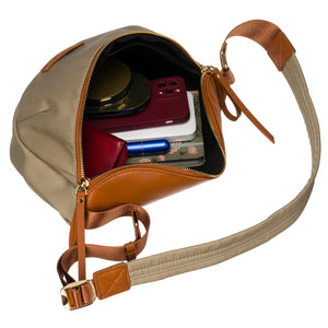 Moteriška rankinė, nailonas ir dirbtinė oda, chaki ir ruda R485