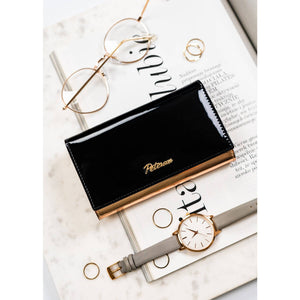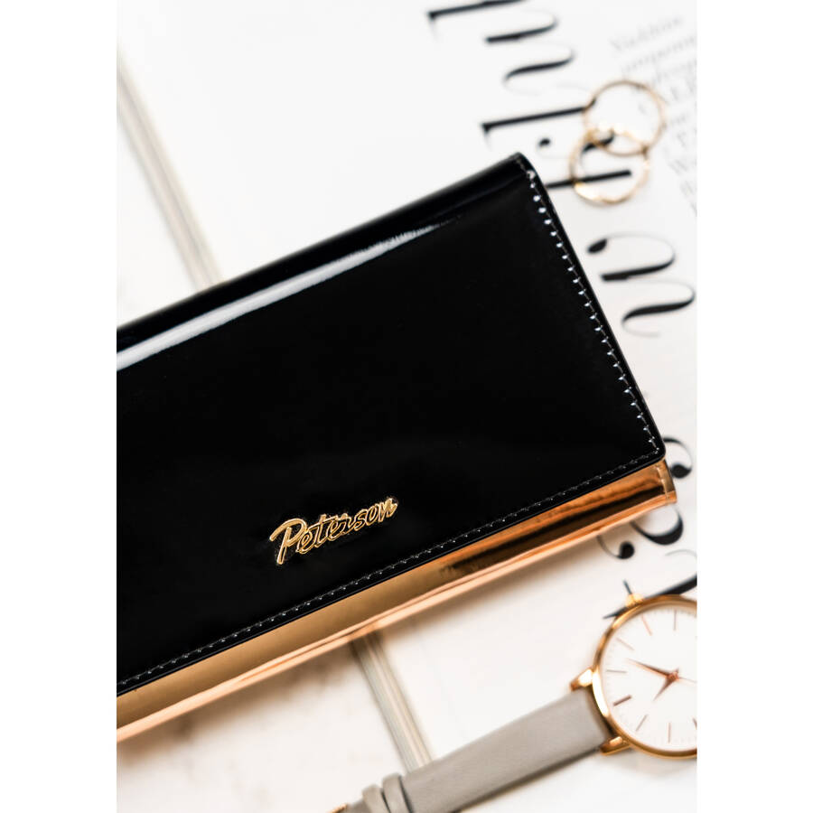 Ši elegantiška moteriška piniginė iš Peterson kolekcijos yra pagaminta iš aukštos kokybės natūralios ir lakuotos odos. Juoda spalva suteikia klasikinį ir universalų stilių, tinkantį įvairioms progoms. Didelis dydis užtikrina, kad turėsite pakankamai vietos visiems svarbiausiems daiktams. Be to, piniginė yra aprūpinta RFID apsauga, kuri padeda apsaugoti jūsų korteles nuo nepageidaujamo nuskaitymo. Su 1-5 kortelių skyriais, ši piniginė yra praktiškas ir stilingas pasirinkimas kiekvienai moteriai.